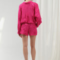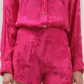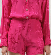 Le short Leny incarne la fusion parfaite entre confort estival et raffinement. Confectionné dans une viscose satinée fluide au dessin floral en jacquard, il se distingue par ses finitions soignées et son bouton bijou en guise de fermeture. Une pièce facile à associer, aussi chic que décontractée.