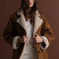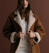 Le manteau 63826 incarne la chaleur et le raffinement de l’hiver. Confectionné dans un effet daim camel et doublé d’une fausse laine crème ultra douce, il enveloppe la silhouette d’une allure à la fois chic et décontractée. C'est la pièce phare pour la saison froide.
