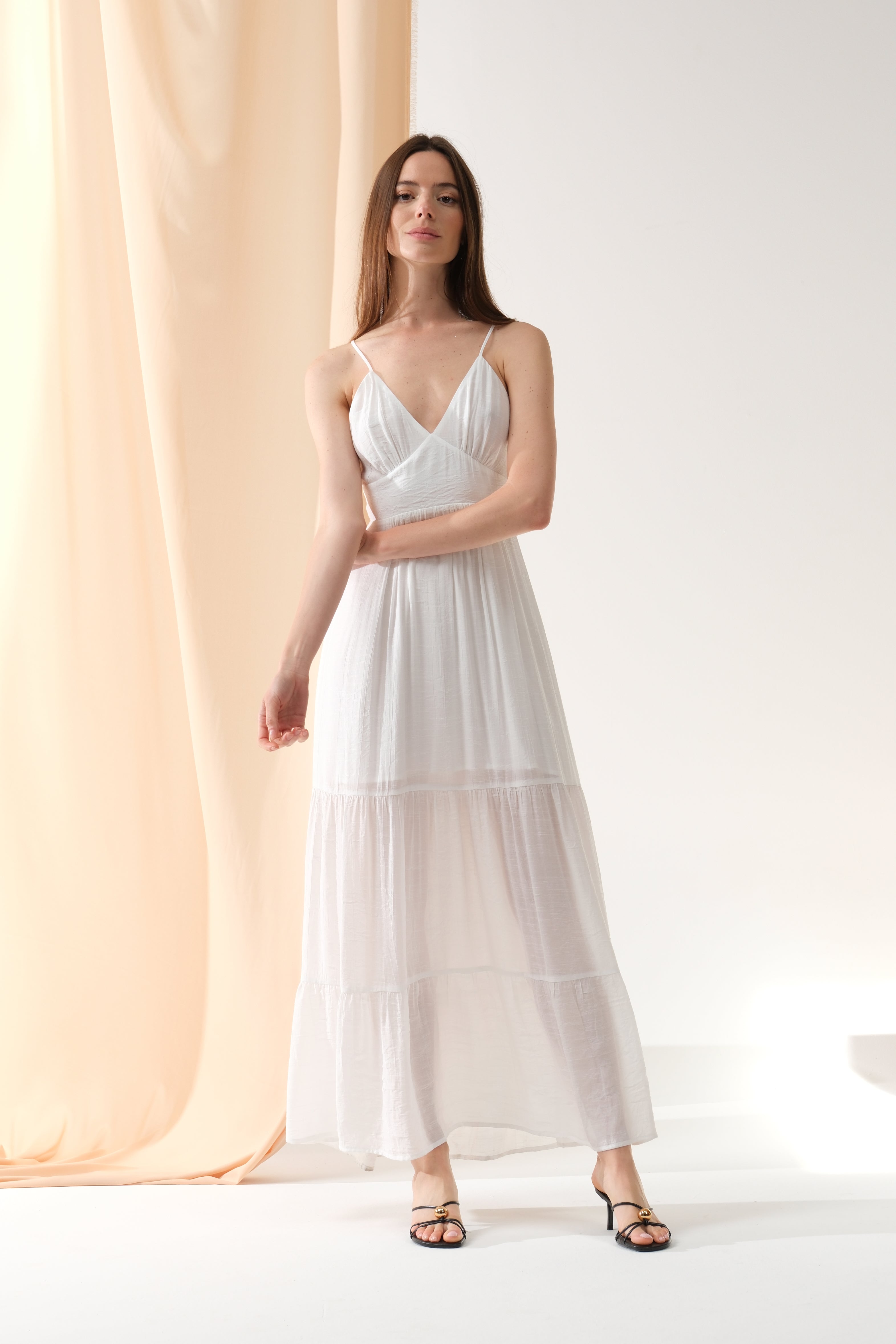 Apportez une touche de fraîcheur et d’élégance à votre vestiaire avec cette robe longue fluide. Son décolleté en V et son dos délicatement noué subliment la silhouette avec sensualité et légèreté. Un indispensable pour les beaux jours.