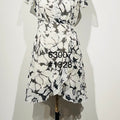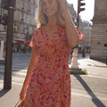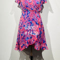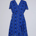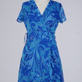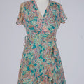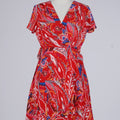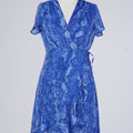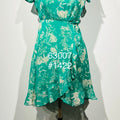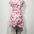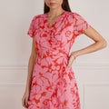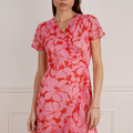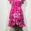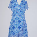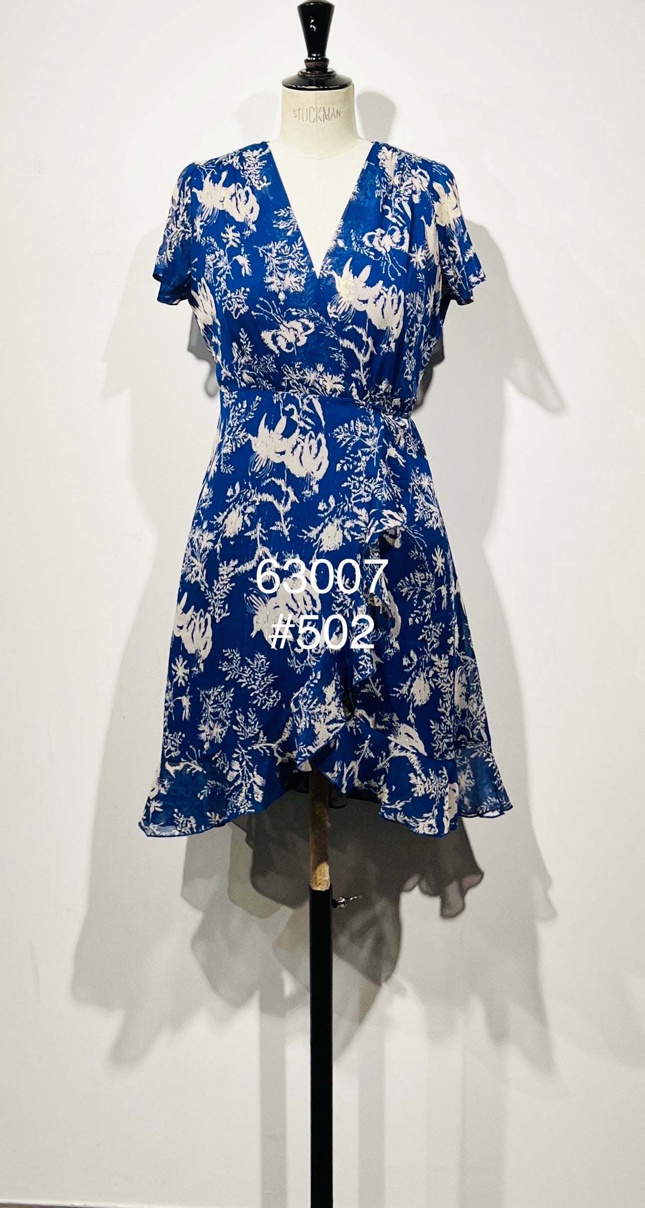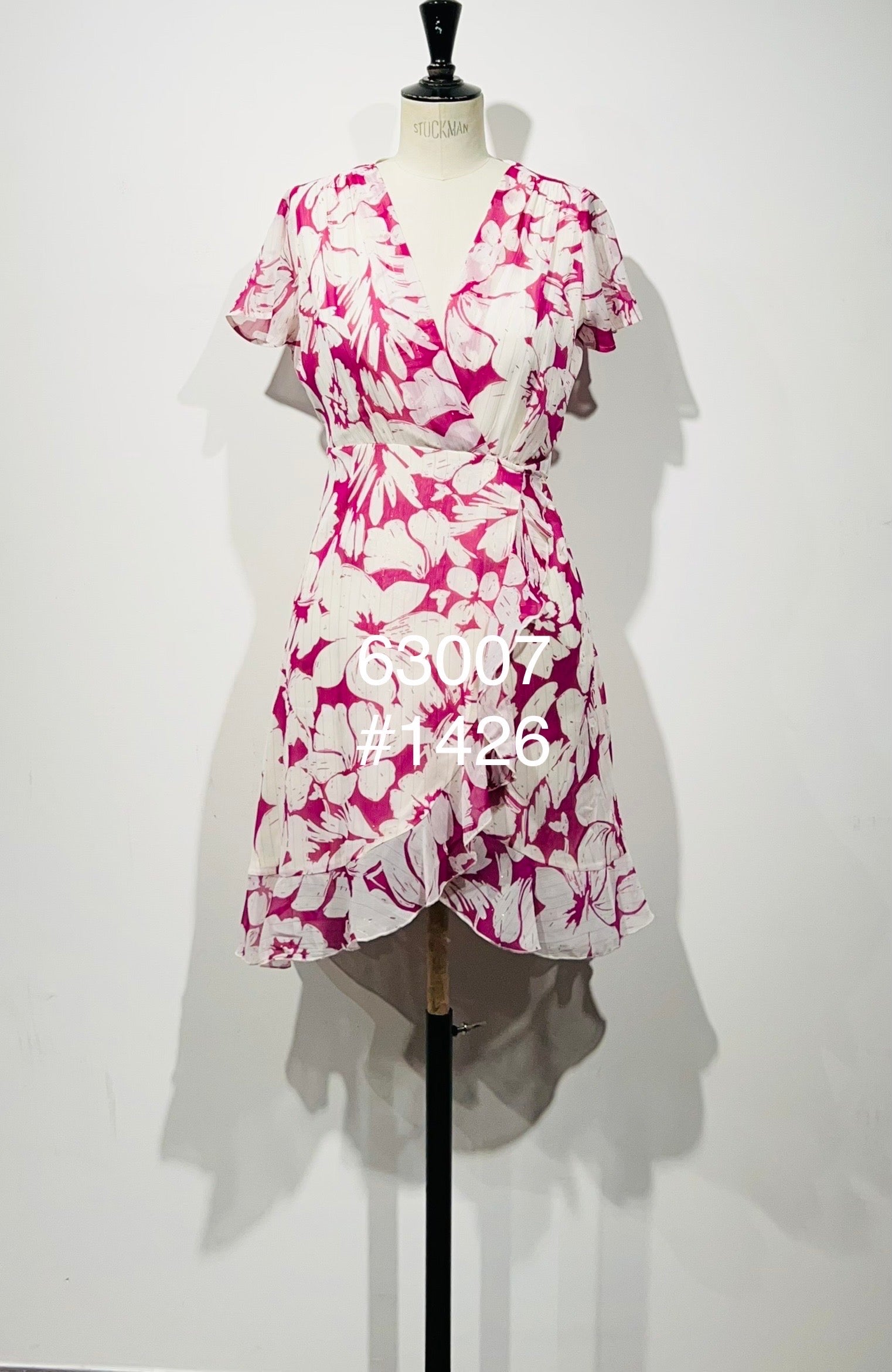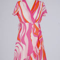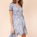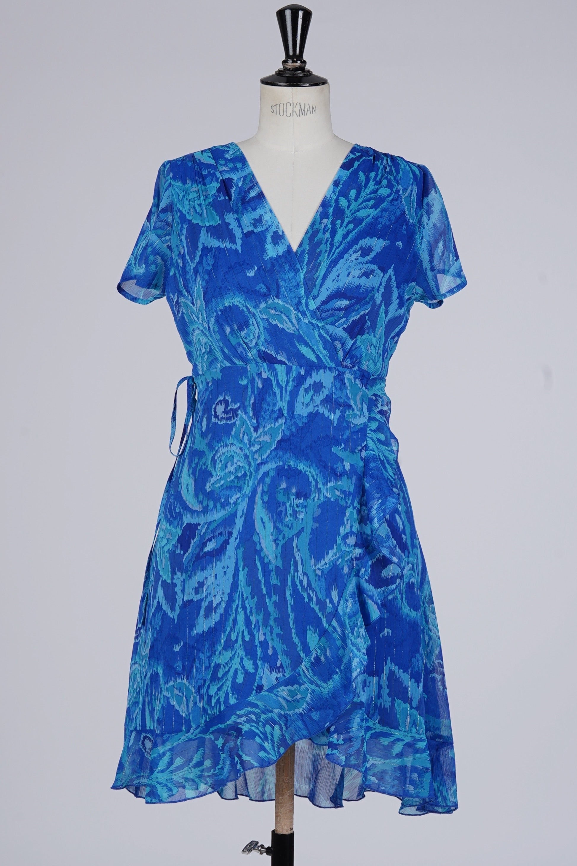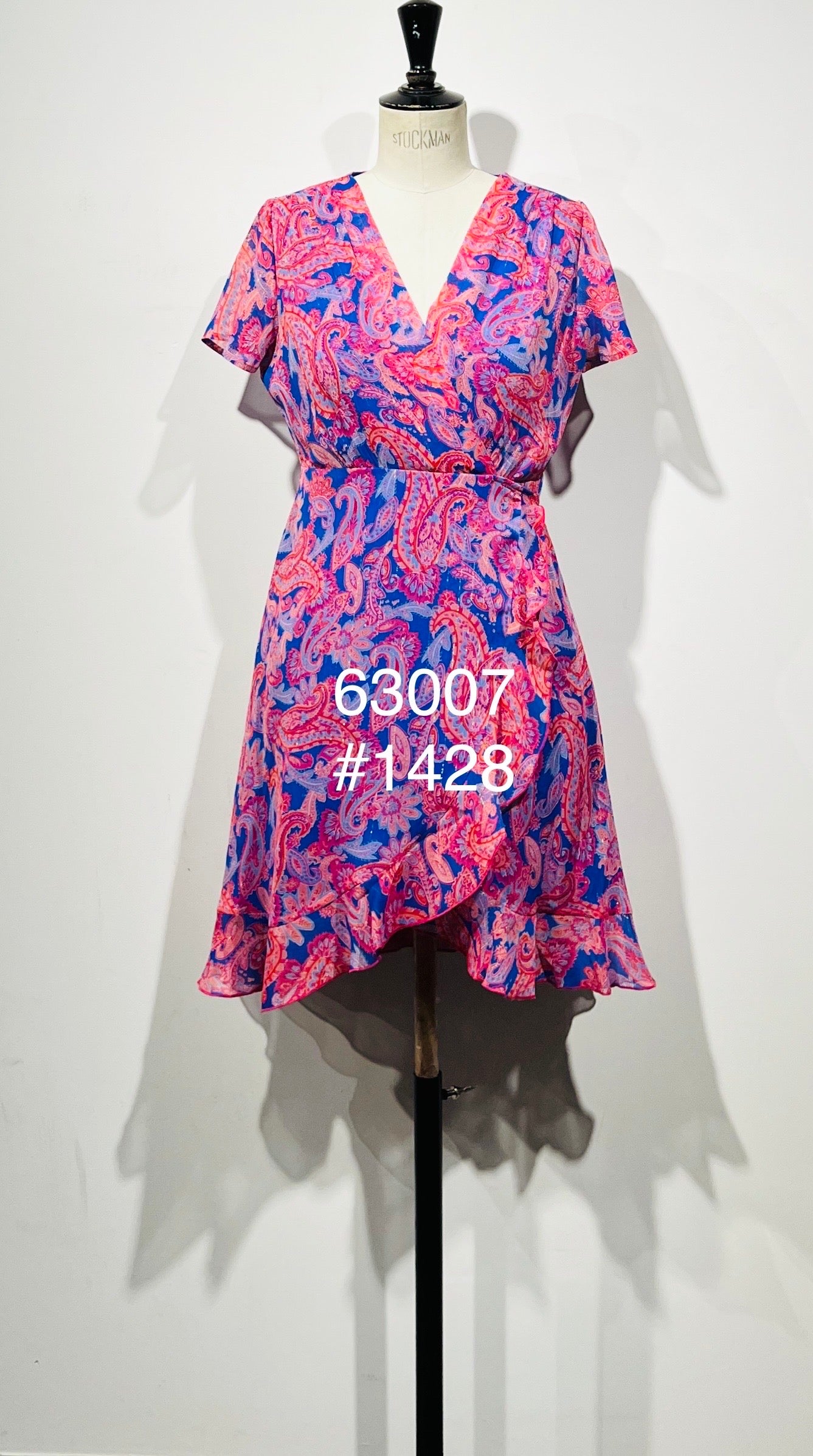 • Short wrap-over dress decorated with ruffles at the bottom of the dress