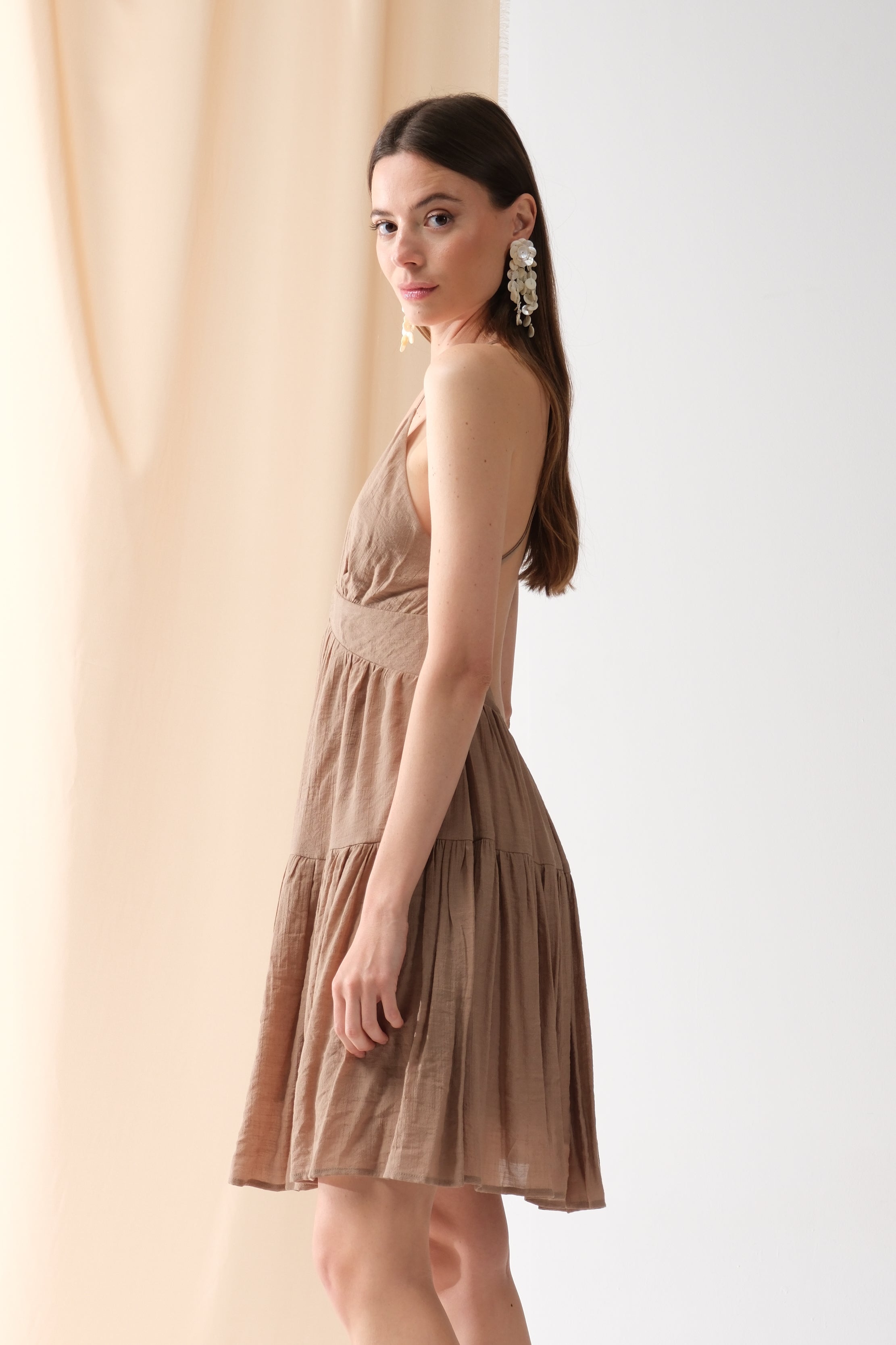 Adoptez une allure féminine et envoûtante avec cette robe courte fluide. Son jeu de fines bretelles croisées dans le dos sublime les épaules et le port de tête, pour des silhouettes irrésistiblement légères.