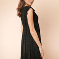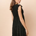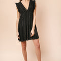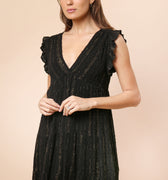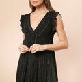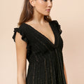 - Short Rosie dress, ruffles on the shoulders, V-neck, lurex details