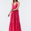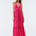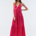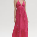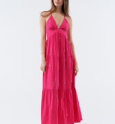 Jolie / S fuchsia – Long cotton dress, decorated with jewels.