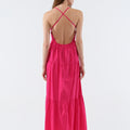 - Adjustable thin straps that cross in the back, providing an elegant open back.