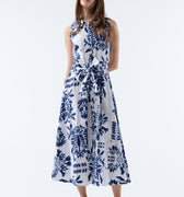 Enhance your summer wardrobe with our midi-length shirt dress, featuring a captivating hand-embroidered detail. Crafted from cotton poplin, it offers the perfect blend of comfort and elegance. Its flared cut and matching belt subtly accentuate the waist, while its full-length button placket and classic collar add a sophisticated yet practical touch.