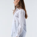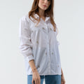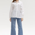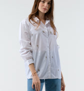 Embrace subtle elegance with Roys, a cotton poplin shirt embroidered with hand-embroidered jewels. Its classic collar and long sleeves give it a timeless style, while the delicate embellishments add a precious, artisanal touch. Perfect for elevating your everyday outfits, Roys pairs equally well with jeans and a dressier skirt.