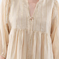 - Slit neckline with tassel cords, adjustable to your liking.