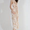 - Long, flowing cut that delicately hugs the curves of the body