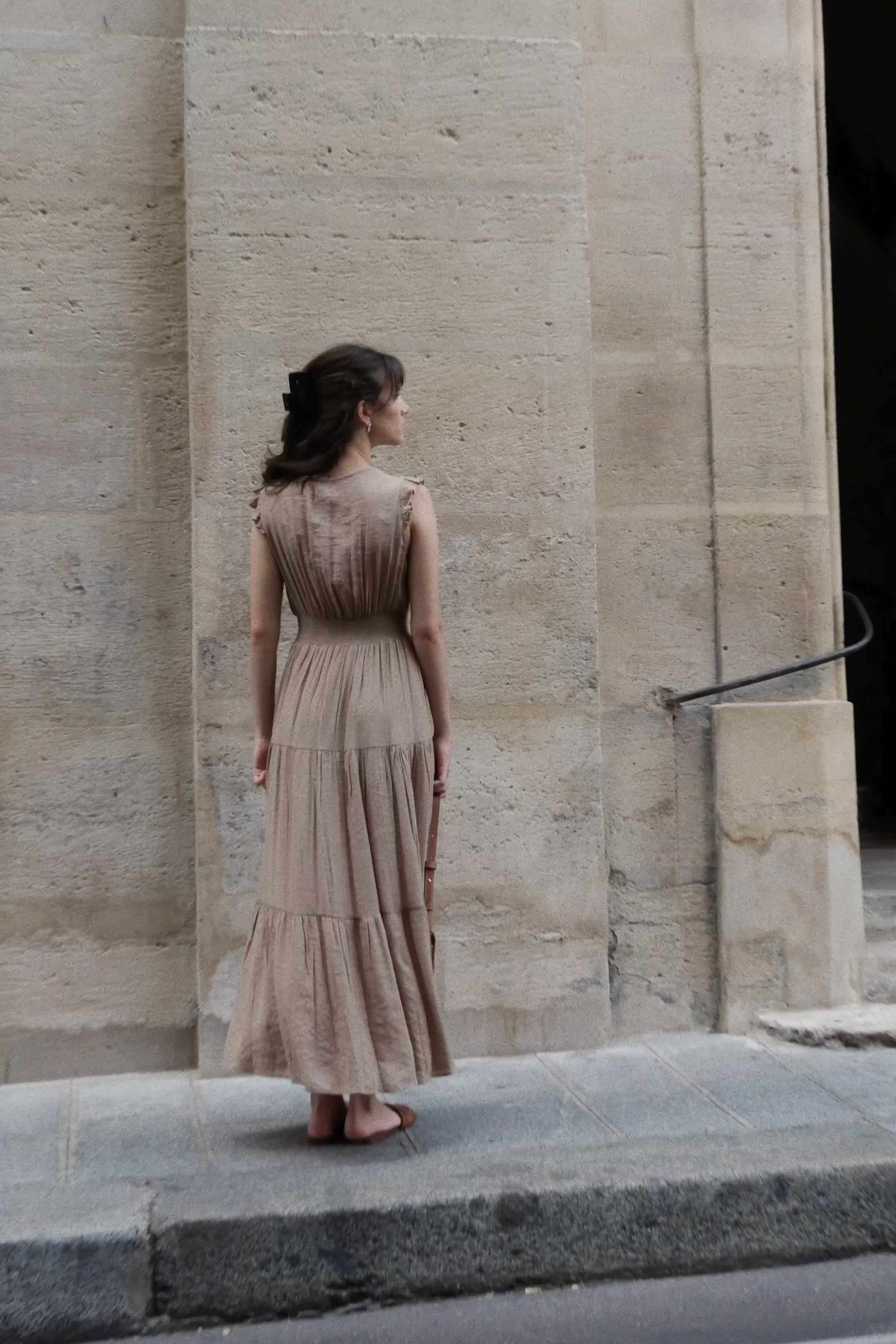- Robe longue sans manches avec volants aux épaules