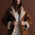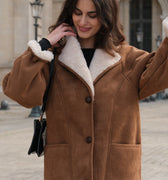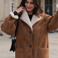 - Manteau long effet daim doublé fausse laine
