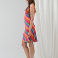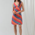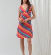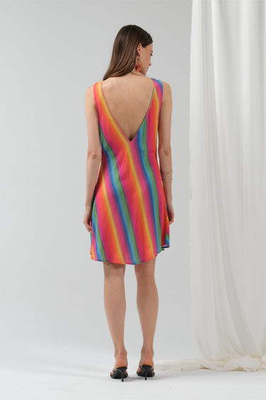 Laissez-vous séduire par la robe Genia courte. Sa coupe courte, son imprimé arc-en-ciel et son décolleté au dos en font une pièce forte, idéale pour l’été. Fluide et audacieuse, elle sublime la silhouette avec sensualité tout en restant confortable et facile à porter.