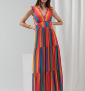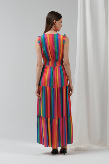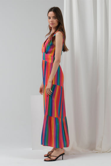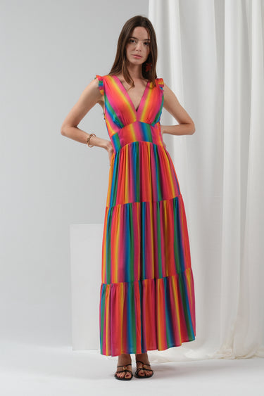 Laissez-vous séduire par la robe Robine, un modèle long et vibrant, parfait pour illuminer vos journées estivales. Avec son dégradé arc-en-ciel et sa coupe flatteuse, elle apporte une touche de joie et de féminité à votre dressing.