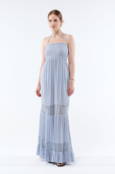 Sohane embodies the ultimate bohemian spirit, combining comfort and elegance. Its smocked bodice hugs the figure perfectly, while the elasticated ties at the back offer a personalized fit. The macramé lace bands give this dress a touch of refinement, perfect for enhancing your summer outfits.