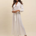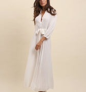 - Fabric belt to tie at the waist, buttonhole all along the front of the dress