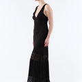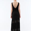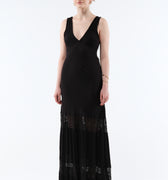 Our stunning Clarissa is a long dress that combines the softness of crepe with the delicacy of macramé lace. Its deep V-neckline and subtly scooped back gracefully accentuate the silhouette, while the macramé insets at the hem give it a bohemian-chic appeal. Perfect for an evening out or a special occasion, Clarissa enhances your look while offering unparalleled comfort.