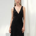 Pensée pour sublimer avec simplicité, la robe courte Carly séduit par ses lignes épurées et sa coupe ajustée. Son encolure en V et son dos plongeant en font une pièce raffinée et facile à accessoiriser, idéale pour une soirée élégante ou un dîner estival.
