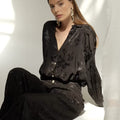 Le chemisier Elros revisite un grand classique avec une touche de raffinement. Confectionné dans une viscose satinée à motif jacquard floral, il offre une allure à la fois chic et décontractée. Ses boutons bijoux apportent une finition précieuse, idéale pour illuminer une tenue du quotidien ou sublimer un look de soirée.