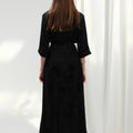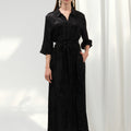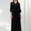 La robe Juna incarne l’élégance sans effort. Avec sa coupe chemisier revisitée et sa ceinture à nouer, elle met en valeur la silhouette tout en conservant un confort absolu. Son tissu fluide à motif floral jacquard en fait une pièce chic et facile à porter, du bureau à une soirée habillée.