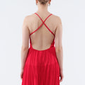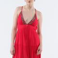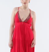 Plume Short is a short viscose crepe dress adorned with hand-embroidered beads, making each piece unique. Its deep V-neckline and open back with crossed straps elegantly highlight the silhouette, while the flowing cut adds a touch of lightness, perfect for sunny days or summer evenings.