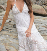 - Embellished with mirror inserts surrounded by embroidery and prints, this dress adds a subtle touch of sparkle to your summer outfit.