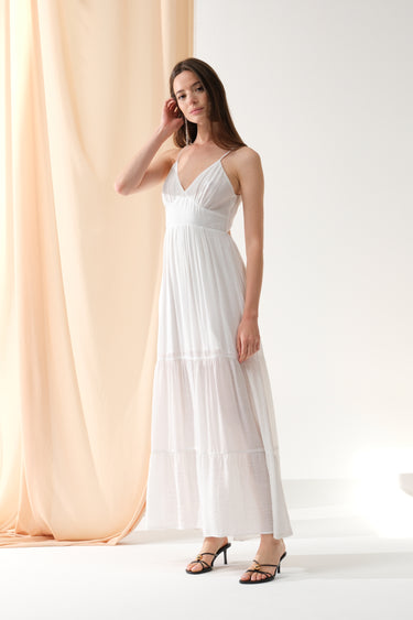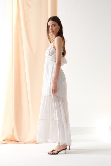 Apportez une touche de fraîcheur et d’élégance à votre vestiaire avec cette robe longue fluide. Son décolleté en V et son dos délicatement noué subliment la silhouette avec sensualité et légèreté. Un indispensable pour les beaux jours.