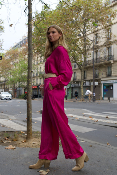- Pantalon en satin jacquard