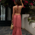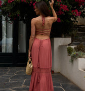 - Liens à nouer au cou, créant un effet dos nu délicat.