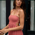 Sohane incarne l’esprit bohème par excellence, alliant confort et élégance. Son bustier smocké épouse parfaitement la silhouette, tandis que les liens élastiqués dans le dos offrent un ajustement personnalisé. Sohane est une robe idéale pour sublimer votre silhouette.