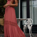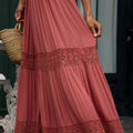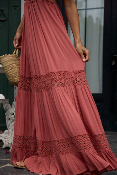 - Incrustations en dentelle macramé sur la jupe, ajoutant une note bohème-chic.